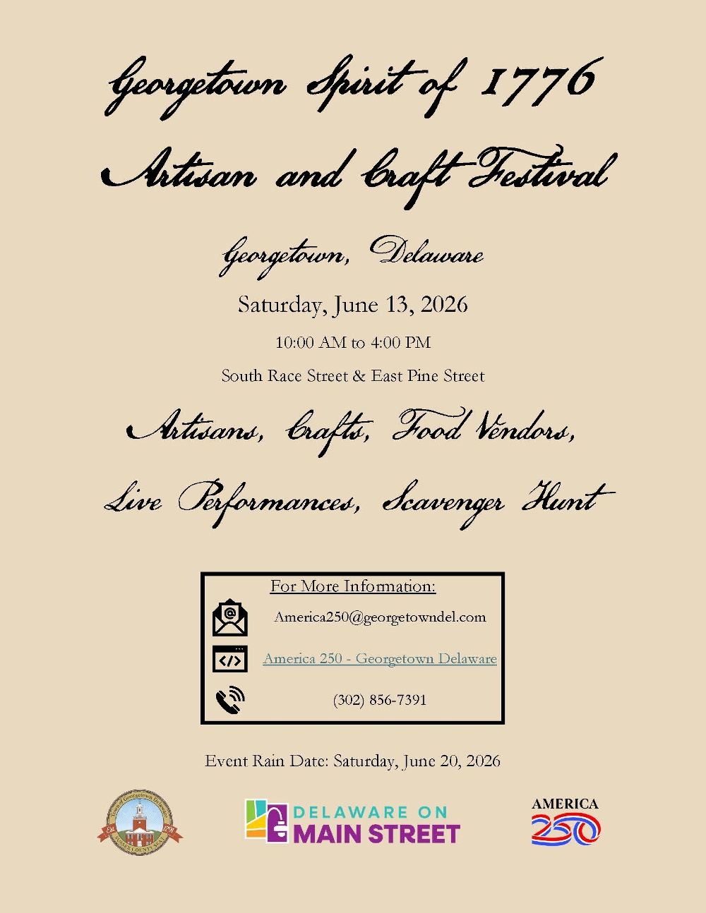 Georgetown Spirit of 1776 Artisan and Craft Festival Vendor Application